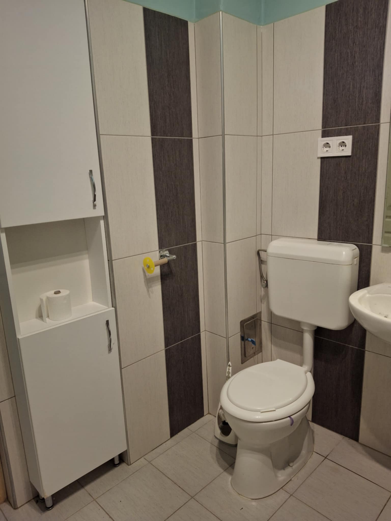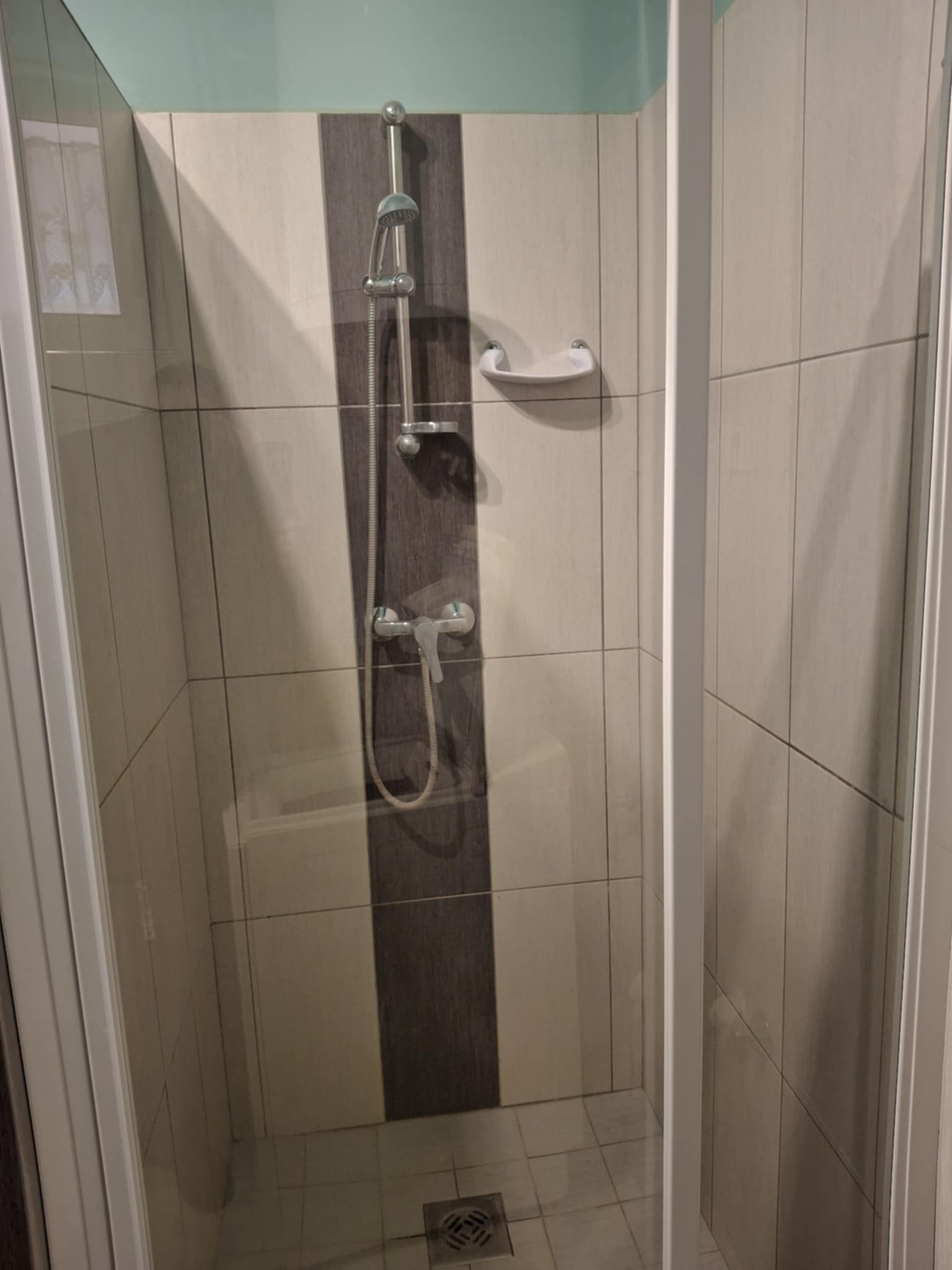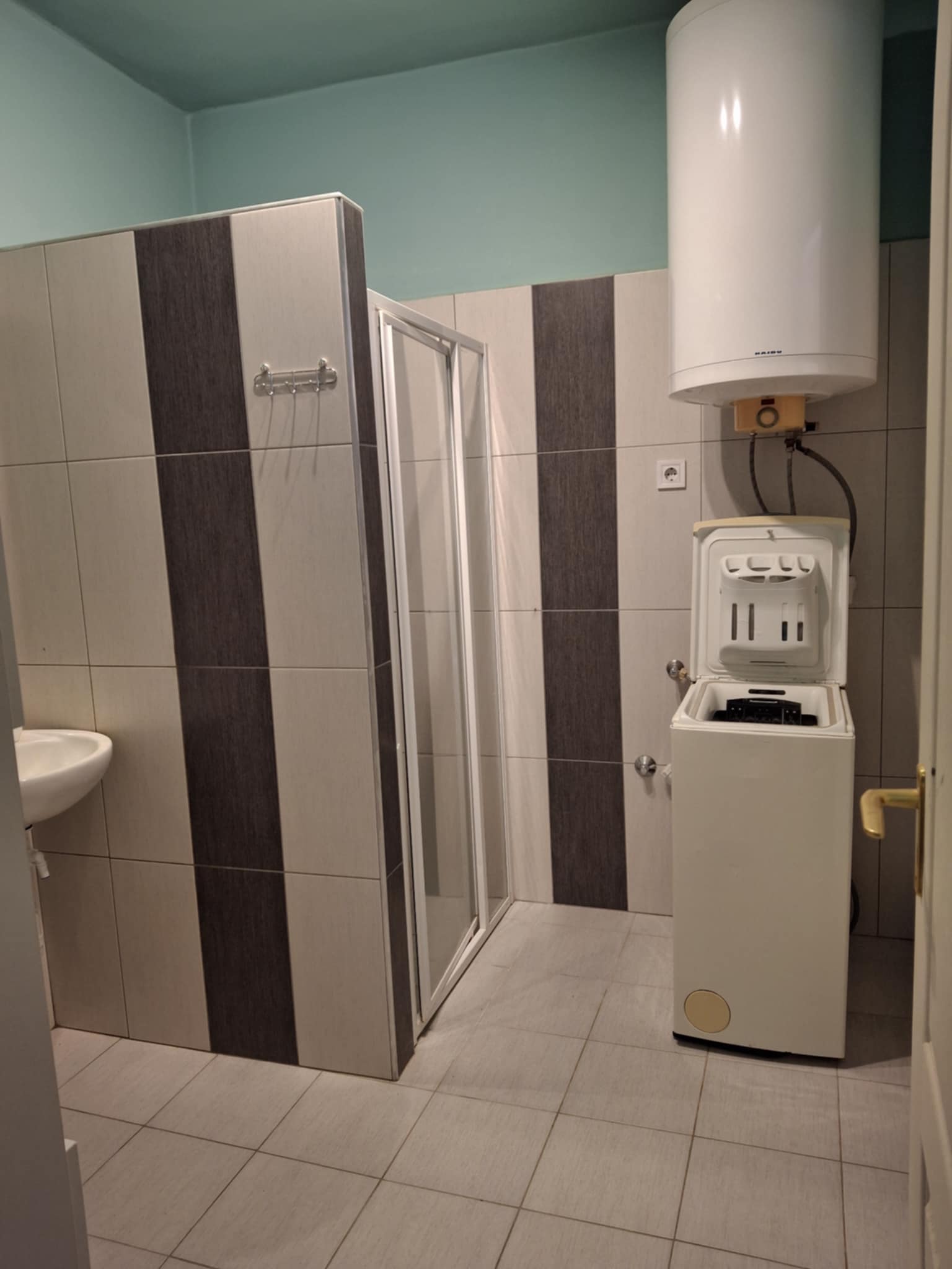 Badkamer 6 m2 met douche, toilet, boiler 120 l , aansluiting wasmachiene.